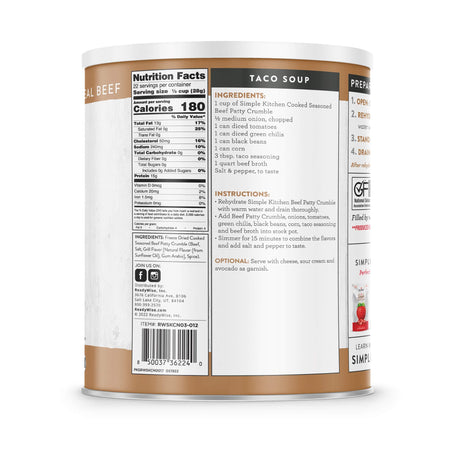 Freeze-Dried Seasoned Beef Patty Crumbles - 22 Serving #10 Can