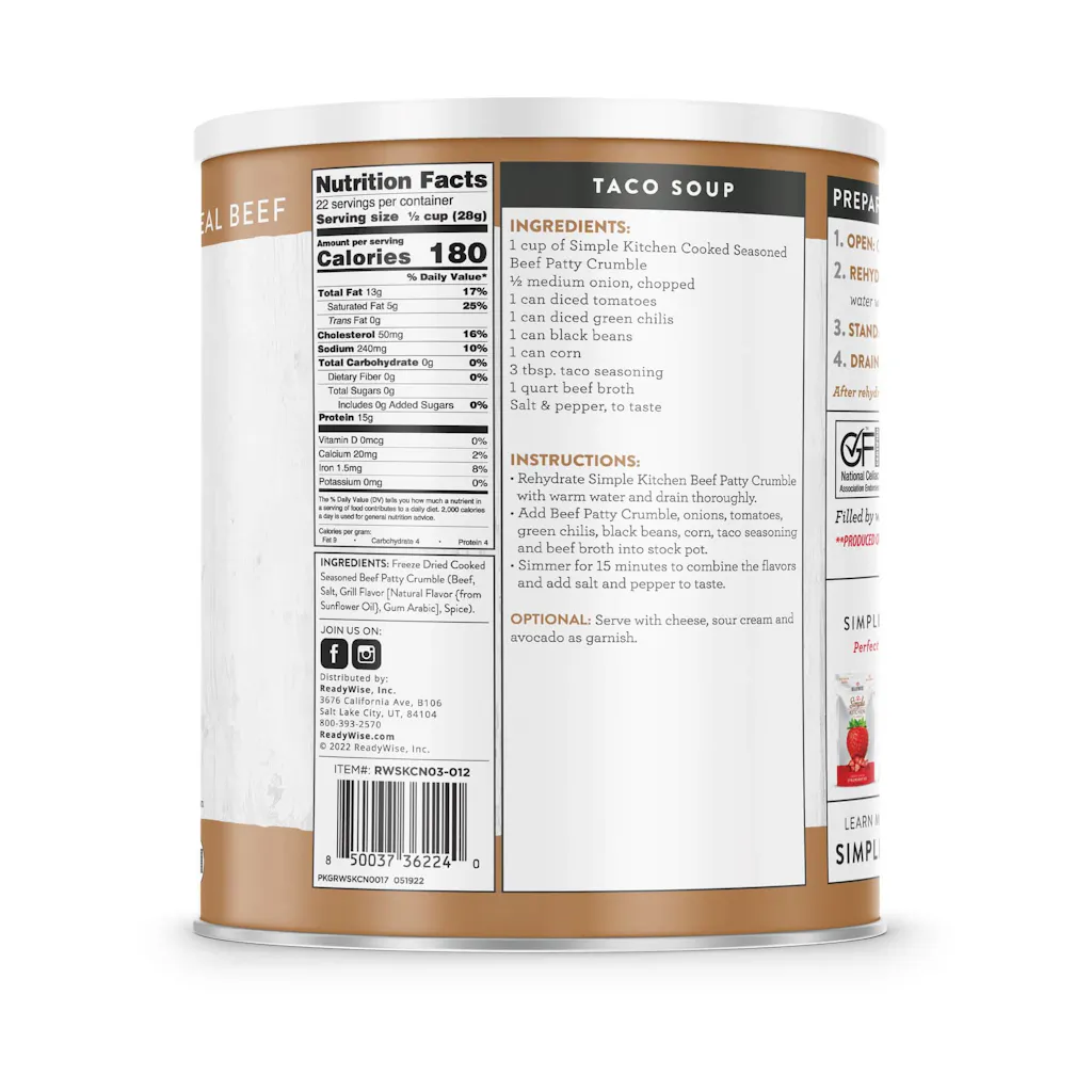 Enjoy the rich, savory taste of seasoned beef anytime, anywhere with our premium freeze-dried crumbles. Perfect for emergency food storage, camping meals, and quick dinners, this versatile protein source rehydrates in minutes while maintaining all the flavor and nutrition of fresh beef.
