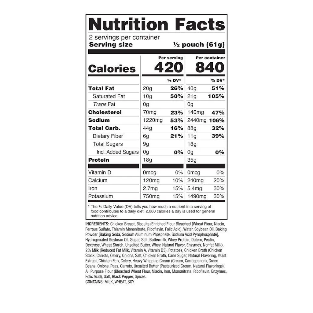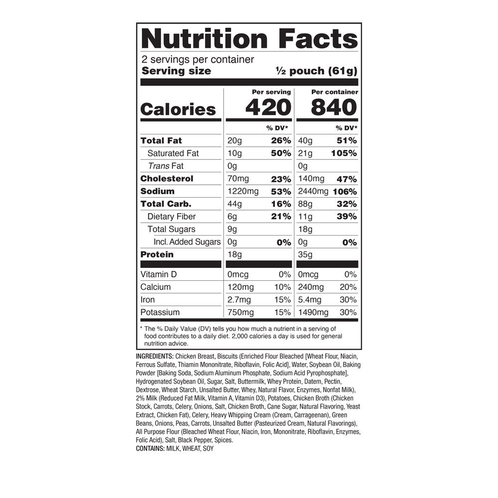 Enjoy the heartwarming flavors of herb-roasted chicken, garden vegetables, and buttery biscuits in this complete pot pie meal—just add water for a taste of home anywhere.