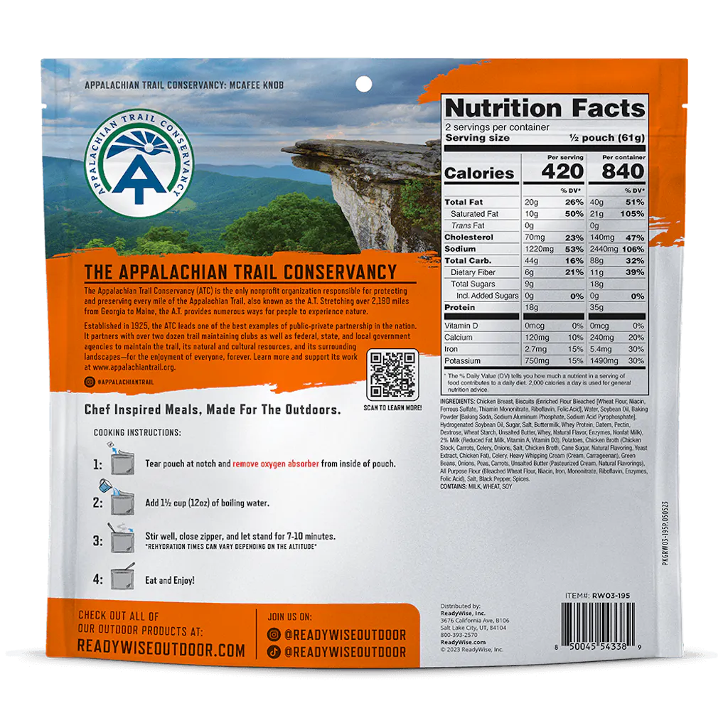 Country Style Chicken Pot Pie - Signature Edition Pro Adventure Meal with Appalachian Trail Conservancy