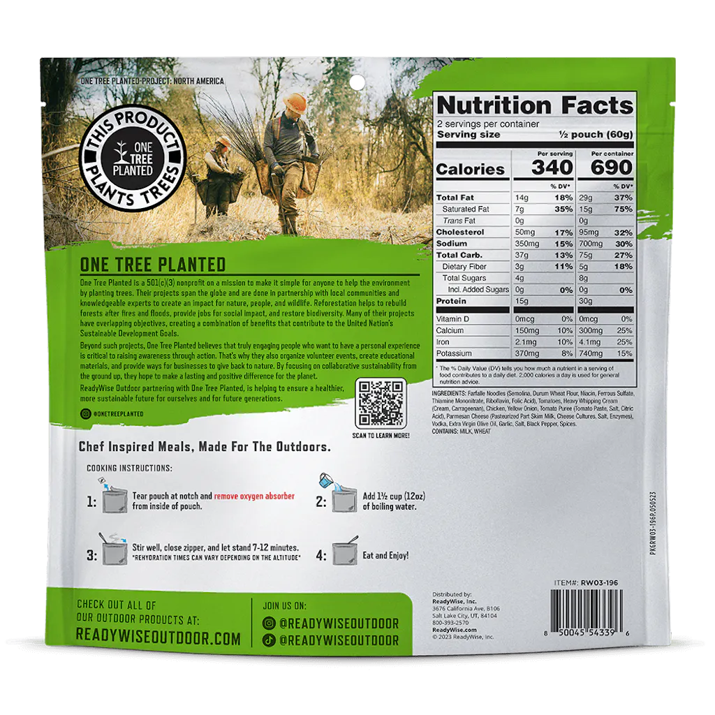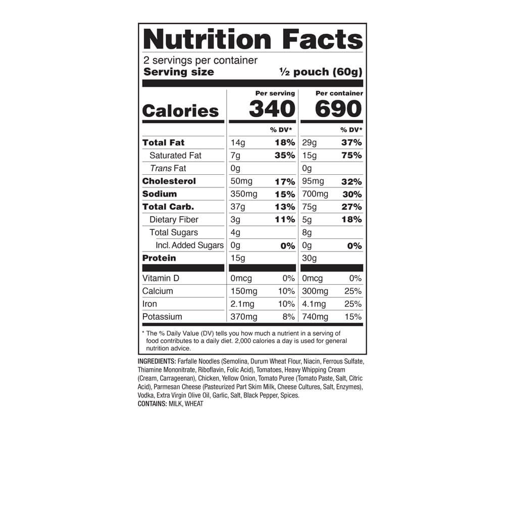 Pasta Alla Vodka with Chicken - Signature Edition Pro Adventure Meal with One Tree Planted - Single Pouch is backordered and will ship as soon as it is back in stock.