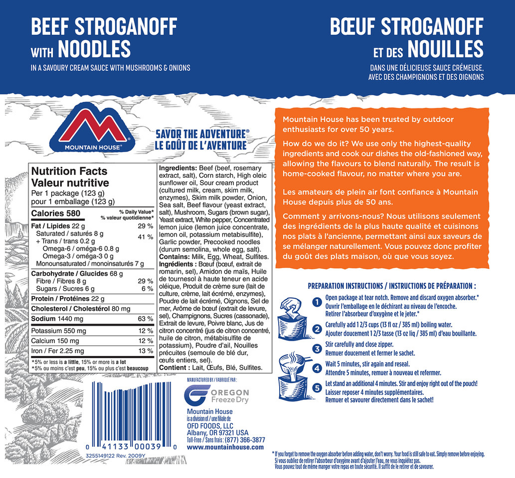 For nearly 50 years, consumers have continued to choose Mountain House as their favourite brand of freeze-dried food for on-the-go adventures, emergency preparedness and survival. With just-add-water convenience, easy no-mess cleanup and home-cooked flavours, Mountain House is the best freeze-dried camping, backpacking, hiking and emergency preparedness food money can buy!