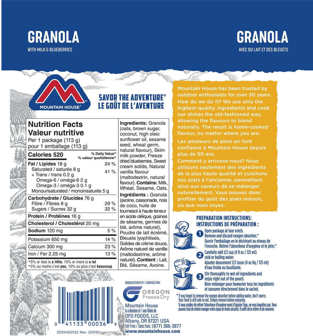 Mountain House Granola with Milk and Blueberries Pouch - One Serving