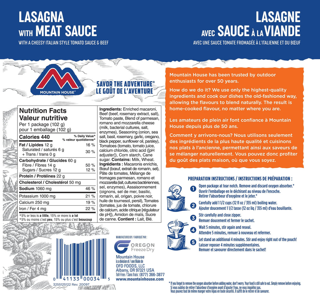 Mountain House Lasagna with Meat Sauce Pouch - One Serving (EARLY EXPIRATION 2051-2053)