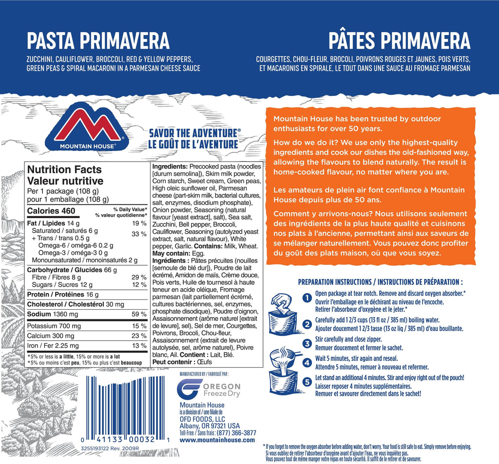 Mountain House Pasta Primavera Pouch - One Serving (EARLY EXPIRATION 2051-2053)