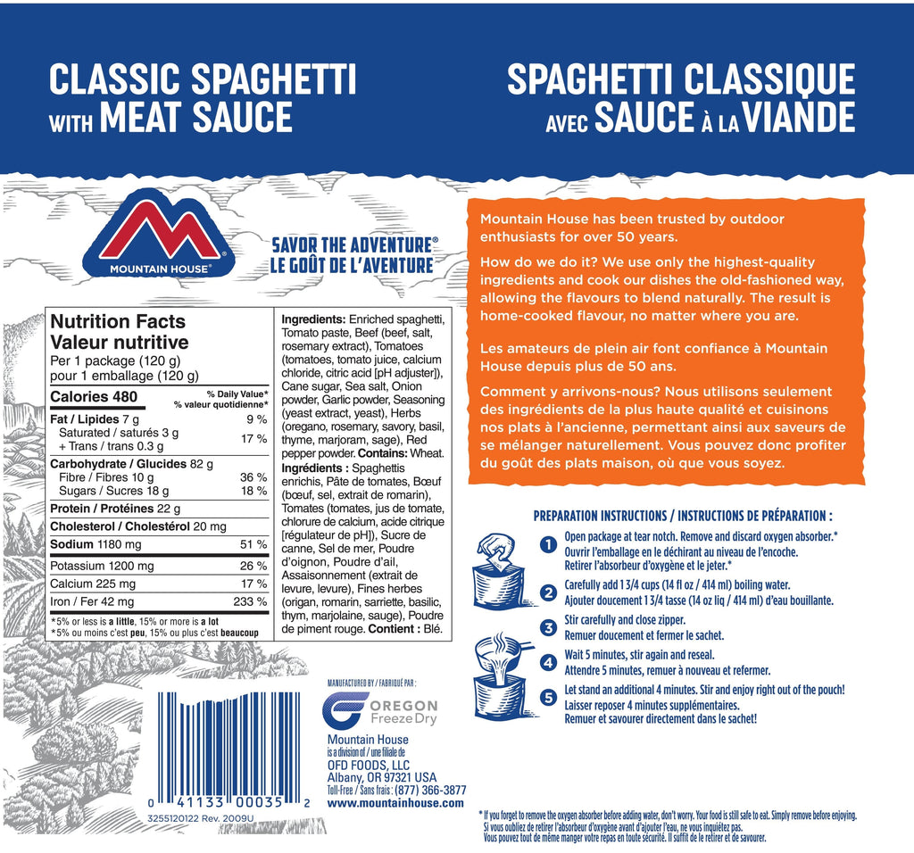 For nearly 50 years, consumers have continued to choose Mountain House as their favourite brand of freeze-dried food for on-the-go adventures, emergency preparedness and survival. With just-add-water convenience, easy no-mess cleanup and home-cooked flavours, Mountain House is the best freeze-dried camping, backpacking, hiking and emergency preparedness food money can buy!